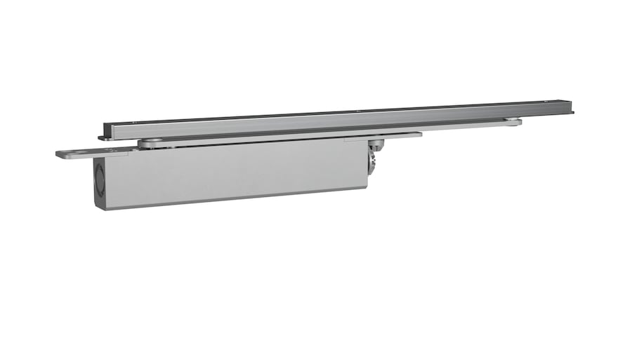 El DC850 es un cierrapuertas oculto con tecnología Cam-Motion® y sistema de guías, ideal para puertas cortafuegos y cortahumo (sin necesidad de un dispositivo de retención). Es compatible con puertas de una sola hoja de 850 a 1100 mm de ancho.