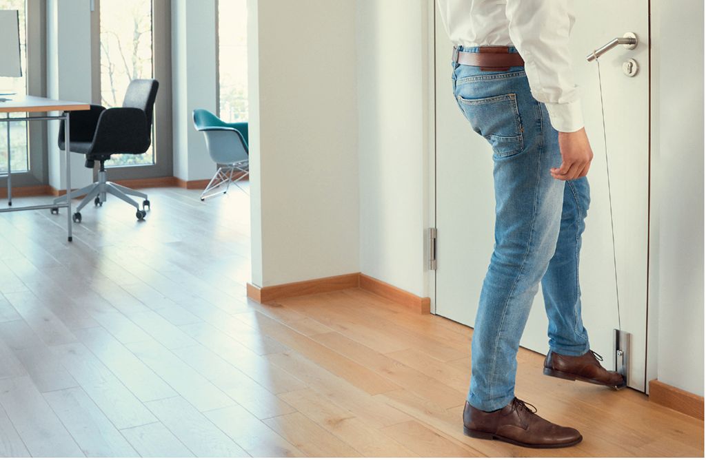 Num espaço público, as portas e as ferragens das portas são uma das superfícies que mais se tocam. Limpá-los e desinfetá-los frequentemente é a forma mais eficiente de prevenir a transmissão de gérmenes. Estamos a ver como surgem inovações que respondem à necessidade de encontrar formas de abrir e fechar portas sem ter que utilizar as mãos, através de um contacto mínimo ou inclusivamente de aberturas sem contacto.